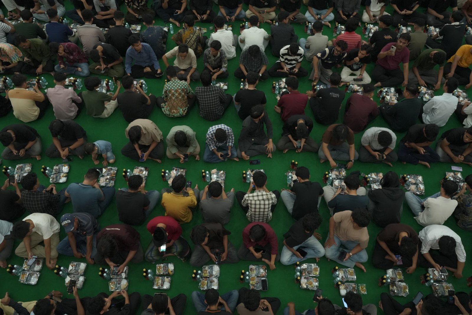 Pantauan di lokasi, warga mulai berdatangan sejak sore. Pelajar dan mahasiswa tampak mendominasi antrean. Panitia membagikan paket berisi nasi, makanan ringan, teh, dan buah. Paket-paket itu disusun hingga lantai dua auditorium. Akses masuk diatur dengan sistem antre untuk mencegah penumpukan.