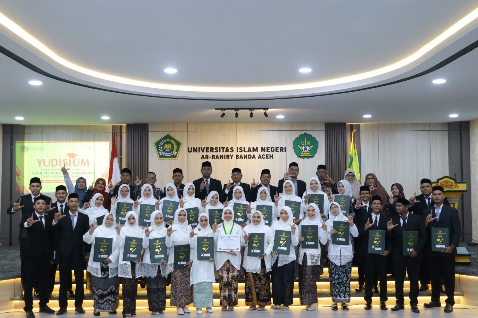 BANDA ACEH – Fakultas Adab dan Humaniora (FAH) Universitas Islam Negeri (UIN) Ar-Raniry Banda Aceh meluluskan sebanyak 47 sarjana strata satu (S-1) dalam Yudisium Gelombang II Tahun Akademik 2024/2025 yang digelar di Aula Rektorat Lantai 3, Kamis (15/5/2025).