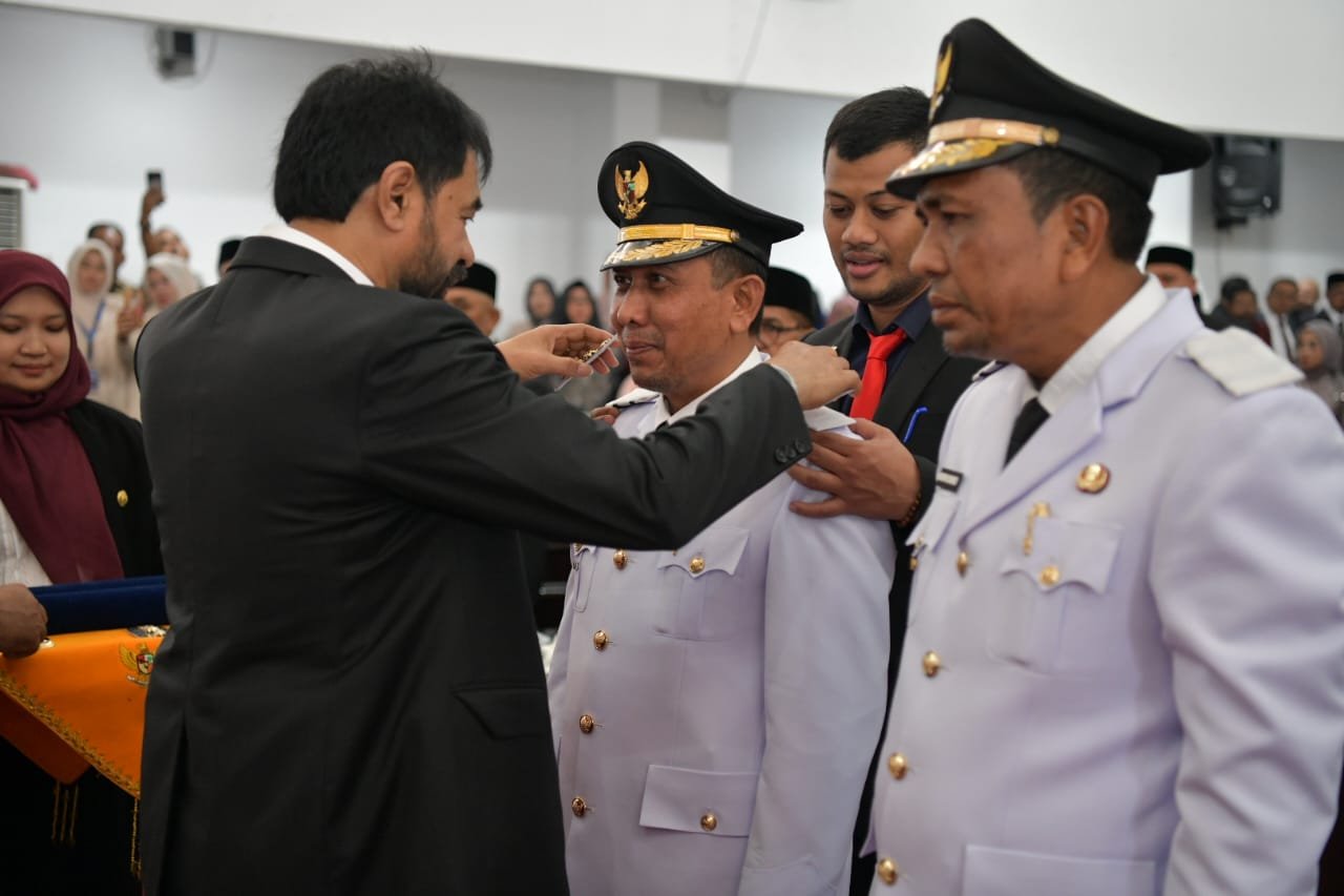 ACEHSIBER.COM– Gubernur Aceh, Muzakir Manaf, resmi melantik Sibral Malasyi dan Hasan Basri sebagai Bupati dan Wakil Bupati Pidie Jaya, dalam rapat paripurna DPRK Pidie Jaya, pada Selasa, (18/2/2025).