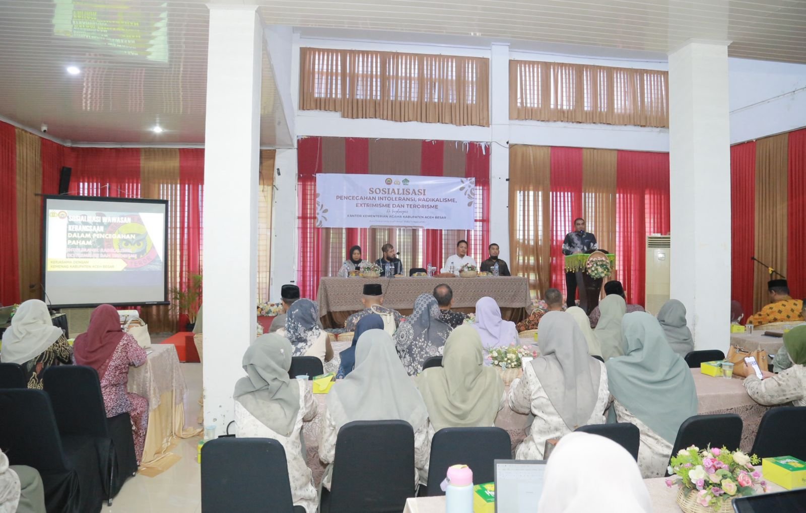 ACEH BESAR – Kantor Kementerian Agama Kabupaten Aceh Besar menggelar sosialisasi wawasan kebangsaan dalam upaya pencegahan penyebaran paham intoleransi, radikalisme, ekstremisme, dan terorisme (IRET) di lingkungan Kemenag Aceh Besar, Aula Dekranasda Aceh Besar, Rabu, 15 April 2026.