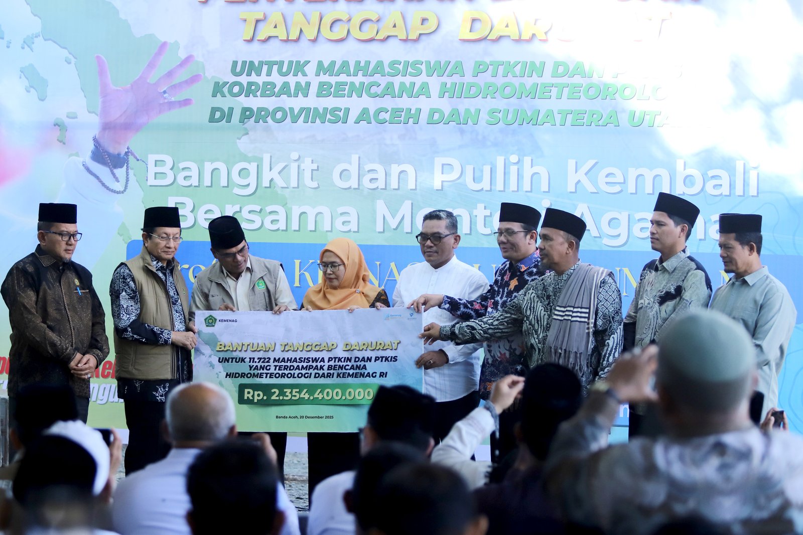 BANDA ACEH— Kementerian Agama Republik Indonesia menyalurkan bantuan biaya pendidikan kepada 4.119 mahasiswa Universitas Islam Negeri (UIN) Ar-Raniry Banda Aceh yang terdampak bencana hidrometeorologi di Aceh dan Sumatra.