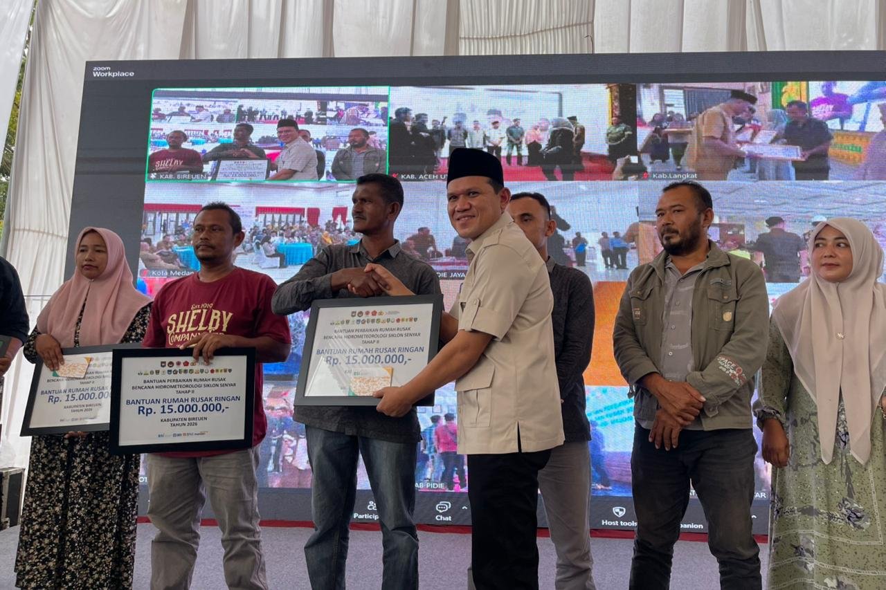 Hal itu disampaikan Fadhlullah dalam acara penyerahan bantuan rumah rusak ringan dan sedang akibat bencana yang dipusatkan di halaman Pendopo Bupati Bireuen, Selasa (3/3/2026).